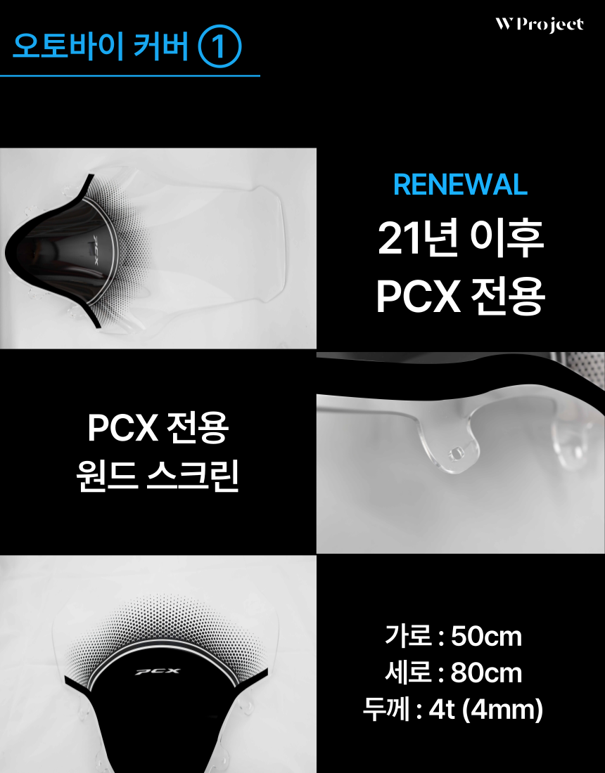 21년식 ~ 24년식 pcx125 전용 오토바이 앞유리 롱 윈드스크린 80cm 투명스크린 윈드쉴드 국내제작